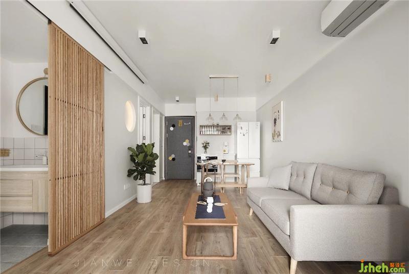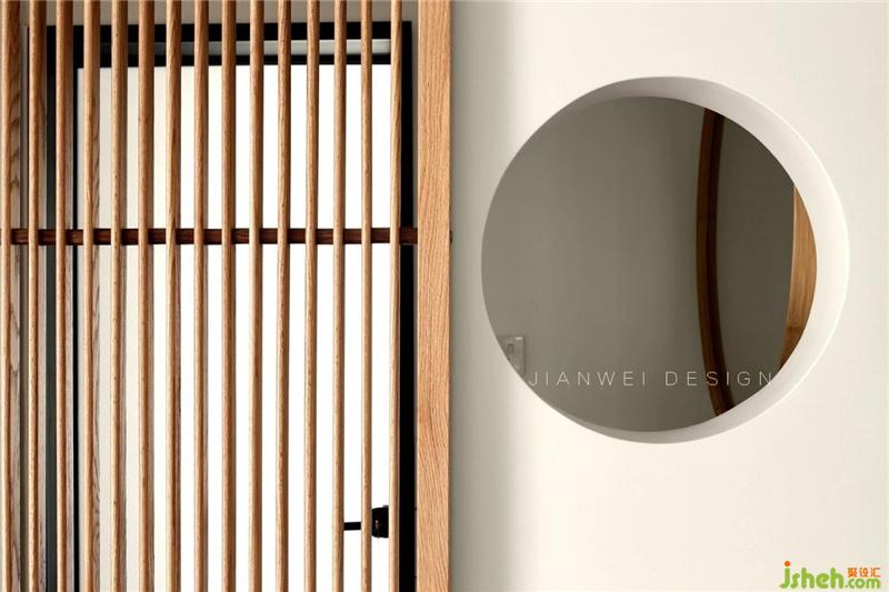 客廳這個可移動的屏風(fēng)增加空間趣味性,圓形造型設(shè)計(jì)在平靜中給人禪意的感覺,同時增加干區(qū)采光與空間的聯(lián)動慣性。裝修設(shè)計(jì)