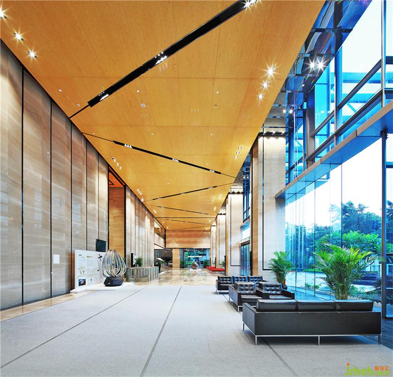 設(shè)計(jì)團(tuán)隊(duì)充分利用環(huán)境資源,利用玻璃幕墻的特性,將海景引入室內(nèi)環(huán)境,為辦公環(huán)境增添美好的天然景致。在室內(nèi)設(shè)計(jì)的裝飾元素上,設(shè)計(jì)團(tuán)隊(duì)結(jié)合現(xiàn)代、簡(jiǎn)約的建筑外觀設(shè)計(jì),融入周大福相關(guān)產(chǎn)品的特征,提煉出裝飾元素進(jìn)行組合,將其運(yùn)用到室內(nèi)的天花、墻面、地面、燈具上使室內(nèi)各個(gè)空間形成內(nèi)在聯(lián)系,加強(qiáng)了室內(nèi)設(shè)計(jì)的主題概念性,營(yíng)造出周大福企業(yè)文化的精髓——真誠,永恒。