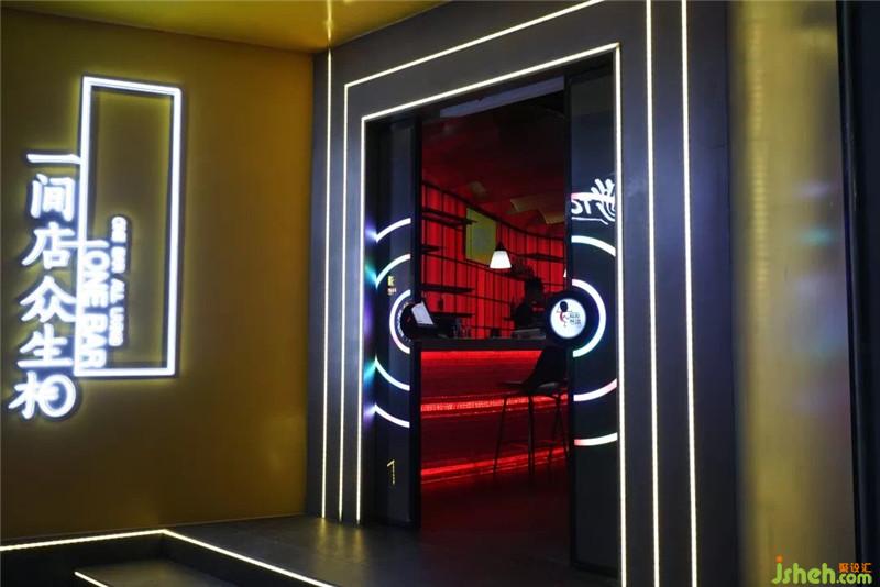 廈門烏央溩泱樂舍位于中華城二層,建筑原體挑高4.5米面積約為500㎡。風(fēng)格:現(xiàn)代工業(yè)風(fēng)于2019年6月落地。本案設(shè)計(jì)在與業(yè)主溝通的時候,我們以打造高逼格并具時代個性的酒吧為核心目的。滿足功能需求的前提下,運(yùn)用現(xiàn)代、極簡、撞色的設(shè)計(jì)語言,體現(xiàn)了空間的時代特質(zhì),減弱現(xiàn)有空間單調(diào)、呆板的感覺。水晶磚堆砌的吧臺極劇個性,通過透視上的重疊以及錯層,使多個空間同時比較,互相緊扣,形成豐富的空間層次。材質(zhì)以金屬波浪板,水波紋,天然石材紋路,為背景和依據(jù)。營造抽象混沌符合“烏泱”樂舍的感受。簡潔、通透、線條感為材料的共同特點(diǎn),玻璃磚,燈帶,激光折射,黑鈦不銹鋼、橋架配合不同層度的間接照明,不同的材質(zhì)在空間中綜合運(yùn)用,不同的機(jī)理形成有節(jié)奏的韻律感。將酒吧文化發(fā)揮到極致。裝修公司