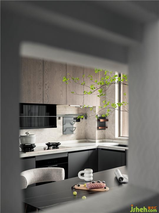 l 原戶型廚房和餐廳面積略顯局促,我們將廚房和餐廳打通,武漢裝修設(shè)計(jì)并將外面的小陽臺(tái)利用起來,廚房以開放式的形式,保有生活的互動(dòng),餐廳則和西廚結(jié)合起來,增加多樣性烹飪。小吧臺(tái)為日常生活增添一點(diǎn)小情趣。