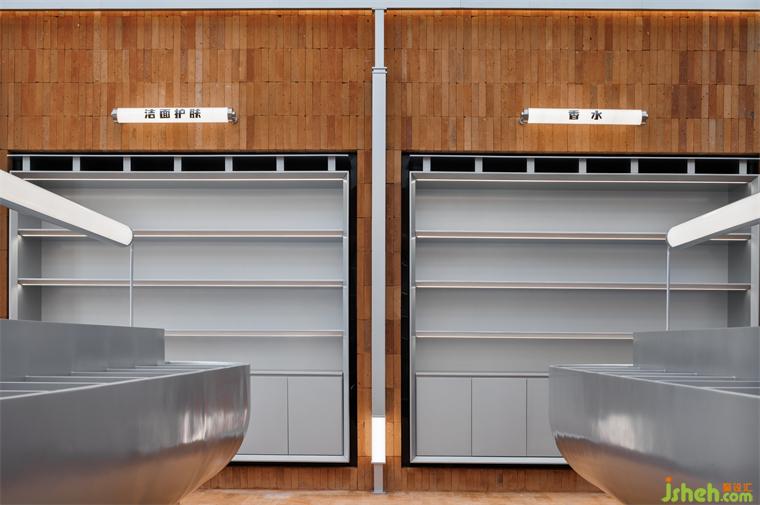 當客人邁進商店,金屬感十足的展示柜造型與墻面紅磚形成了鮮明對比,創(chuàng)造出一種與眾不同的空間氛圍,從而給人們耳目一新的感覺。這種視覺沖擊力的空間形態(tài),在凝固住某種悠然、懷舊氛圍的同時,也是設(shè)計師刻意留出的暢享余地。以光為頂,將創(chuàng)意與時尚相結(jié)合。頂部陣列的天光模板和金屬框架貫穿整體,設(shè)備的隱藏手法將空調(diào)風(fēng)口、煙感、音響籠罩在特定的秩序之中。入墻的展示柜仿佛懸浮于柱子之間。免稅店設(shè)計展柜邊框與隔板都進行了切角處理,整個展柜顯得輕盈干凈。展柜上方的壁燈則歸納了售賣品類,使人一目了然。充滿秩序感的柱子銜接頂部,將頂面、墻體進行重構(gòu),形成特有的空間特征。