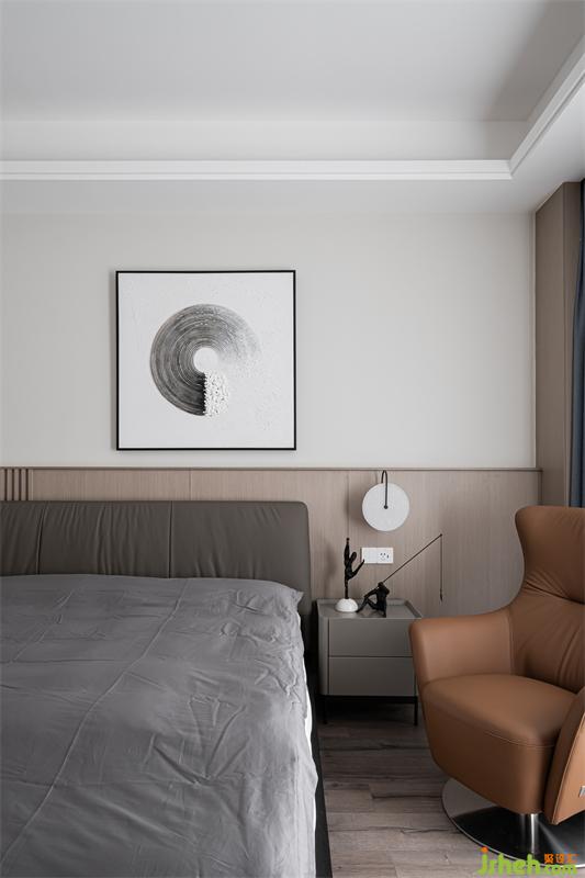 主臥僅以一定比例的“實(shí)木”勾勒出優(yōu)雅而高級(jí)的質(zhì)感,成都裝修設(shè)計(jì)以低飽和度的“高冷”姿態(tài),重塑匠心獨(dú)特的藝術(shù)品格。背景墻采用白色+實(shí)木+木條的設(shè)計(jì),強(qiáng)化空間層次的變化,讓整體空間顯得更加時(shí)尚活潑,優(yōu)雅又大方。