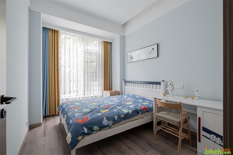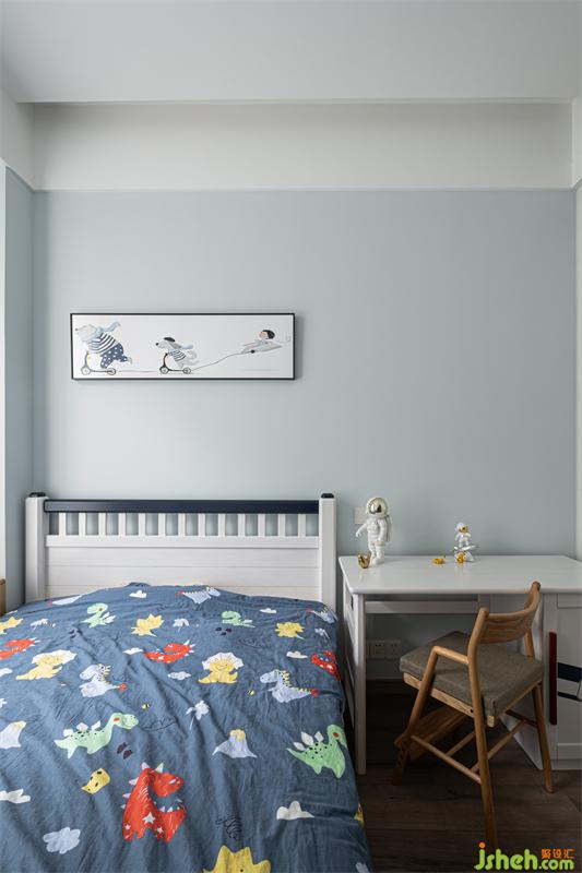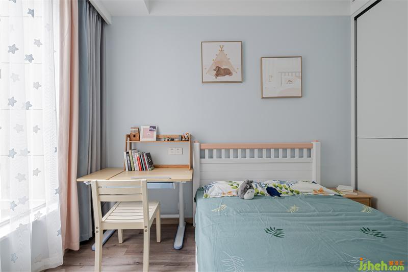 成都裝修設(shè)計(jì)運(yùn)用明亮的色彩作為兒童房的背景,配上富有孩童感的畫(huà)作,讓孩子們能夠擁有屬于自己的一方小天地。