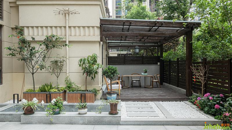 利用原始花園地面的高度差,將花園和主臥外的休閑茶室做成高低位,既順勢(shì)而為又區(qū)分了空間。中式家具的融入,流暢的線條感更能凸顯個(gè)性和格調(diào)。極大的體現(xiàn)了悠閑自得的心境。