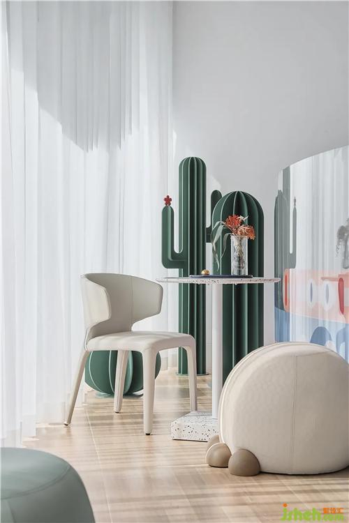 Pink, white, green, grey and orange, colourful colours and fantastic lighting arouse children’s curiosity about the world. As they enter the arena, they see Lovely Claw leisure stools designed by different nodes and magical sculptures, enhancing spatial diversity.