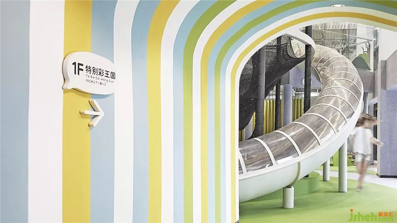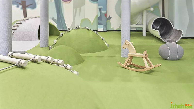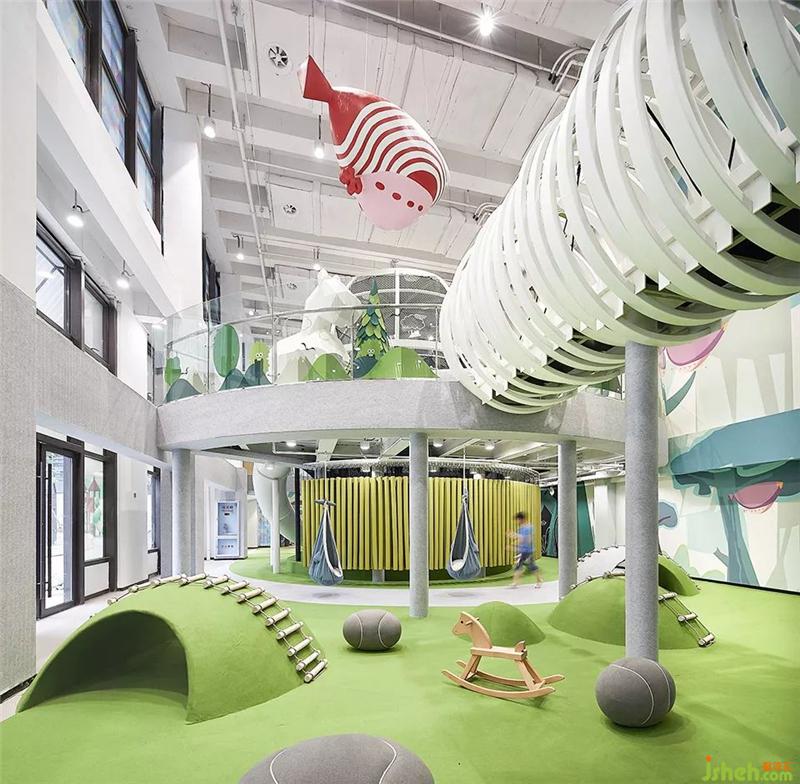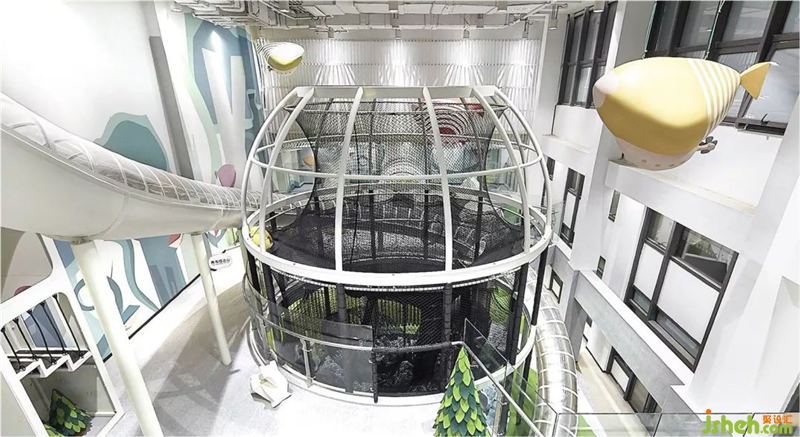 In the first floor, service area, shoe changing area, family toilet and other auxiliary space are set. At the same time, all kinds of recreation spaces suitable for 3-5-year-old children are tailor-made on the first floor, which integrates climbing, crossing, drilling and other projects, so that preschool children can better contact and understand the world through various means.