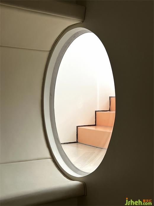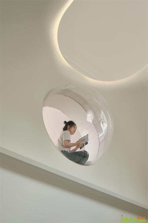 別墅設(shè)計(jì)師利用兩層通高的客廳,頂部設(shè)置的一處太空艙更是對(duì)關(guān)系具像化呈現(xiàn)的“神來(lái)之筆”——人在其中安心地獨(dú)處、閱讀,也可以從高處俯瞰整個(gè)客廳的活動(dòng),在空間通過(guò)目光的交匯,互通有無(wú)。和家人共處時(shí),也可以完全的做自己,這大概是有關(guān)家庭生活最美好的場(chǎng)景。