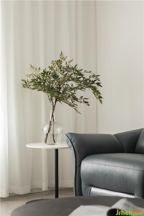 客廳的采光很不錯(cuò),角柜及一層白色紗整體的有一種很安靜的感覺。