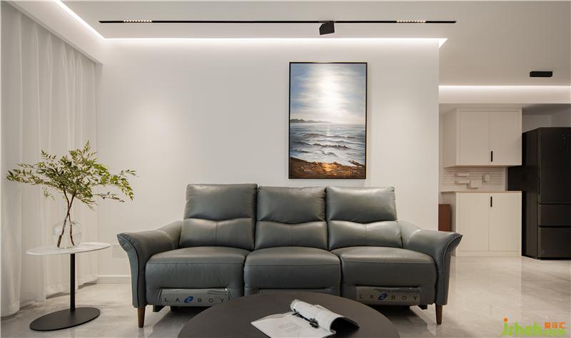 沙發(fā)的頂面采用了磁吸軌道燈,裝飾畫采用錯(cuò)位的掛法,看上去沒有那么呆板,這個(gè)裝飾的顏色及圖案,也是更具客戶看了風(fēng)水而選擇的。