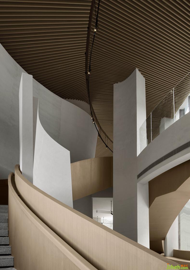 In the design of the whole vestibule of the Origin of Life Culture Museum, the design team runs through the whole vestibule through two curved staircases, one winding up and the other descending. The two staircases are intertwined in the perspective of the vestibule, implying male and female roles in both genders. They are facing each other independently, yet equally.
