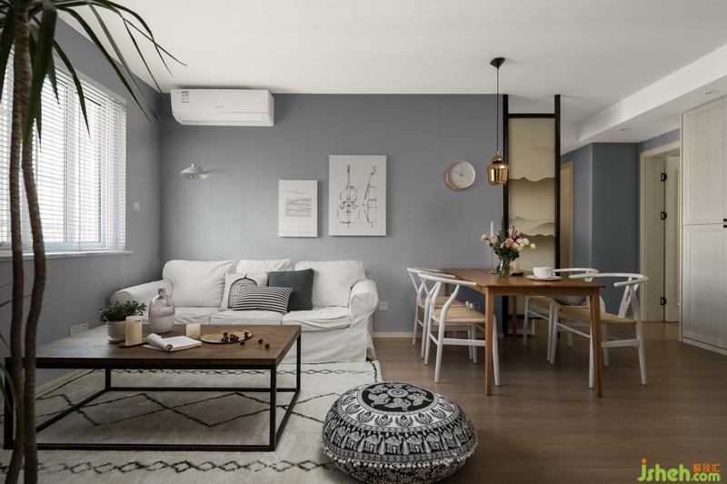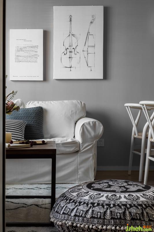 原來的沙發(fā)是很早買的,換了白色沙發(fā)套,跟新的沒區(qū)別??蛷d只有地毯是新買的,其他都是利用的舊物。