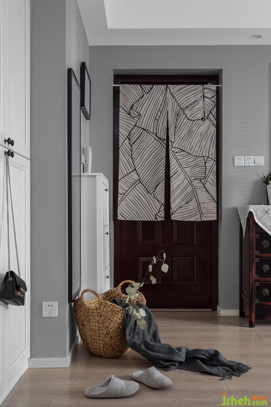 玄關(guān),一進(jìn)門就對著衛(wèi)生間門,而且還不好做隔斷啥的,因?yàn)椴涂蛷d實(shí)在太小,加隔斷就是畫蛇添足了。而且由于沒有門廳,開大門的時候人家在走廊就可以把廳一覽無余了,一點(diǎn)隱私都沒有了,所以室內(nèi)設(shè)計師加個門簾又是風(fēng)水簾,又可以有點(diǎn)私密性,一舉兩得了。門口的翻板鞋柜里都是經(jīng)常穿的鞋子,不然門廳離鞋柜太遠(yuǎn),用起來不方便。凹進(jìn)去的這個鞋柜就放更多的還有換季的鞋子了,大鞋柜真的好爽啊,完全不用擔(dān)心鞋子擺滿地的情況。翻板鞋柜旁邊掛完