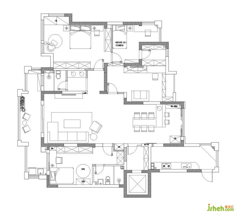 原始戶型圖中大門(mén)是對(duì)著次臥室門(mén)開(kāi),進(jìn)門(mén)處就是衛(wèi)生間,導(dǎo)致這一塊的空間很浪費(fèi),而且門(mén)廳也顯得小氣。次臥空間也不夠大,室內(nèi)設(shè)計(jì)師綜合考慮后設(shè)計(jì)師把大門(mén)開(kāi)門(mén)方向由原來(lái)的南向開(kāi)門(mén)調(diào)整為東向開(kāi)門(mén)(本物業(yè)為一梯一戶所以可以改動(dòng)),改動(dòng)后把鞋柜放置在電梯間,從大門(mén)進(jìn)門(mén)后是開(kāi)放式西廚加餐廳區(qū)域,空間的連貫性更好。
