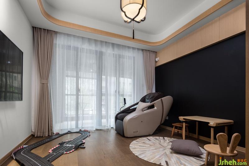 穿過這里是南面的大陽臺,所以這個區(qū)域相當于是有一條動線穿過,索性就作為孩子的活動區(qū)域,也便于大人隨時查看狀況。