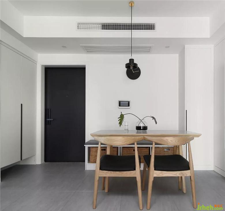 餐廳一面座椅做成卡座形式,一方面作為換鞋凳可以用,另一方面卡座下可以儲物,而且卡座延伸過去做了到頂?shù)膬ξ锕?,轉(zhuǎn)角后把冰箱嵌入到柜子里。節(jié)省了空間還能讓空間更加整齊,Perfect!