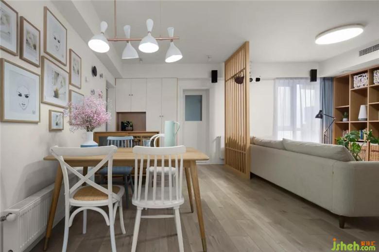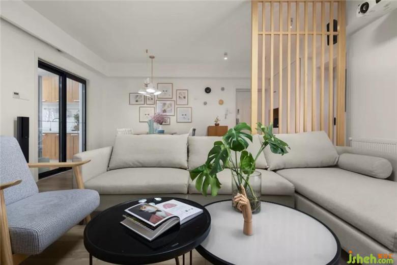 進門后在沙發(fā)后面做了一個實木隔斷,對于空間的連貫性和門廳的采光不會有影響,同時又起到玄關(guān)遮擋的效果。