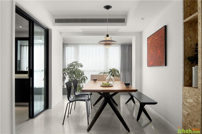 ▲原來的小陽臺拆除后餐廳空間非常寬敞,吧臺承擔餐邊柜+備餐臺的雙重作用,2米長的餐桌多人聚餐毫無壓力。