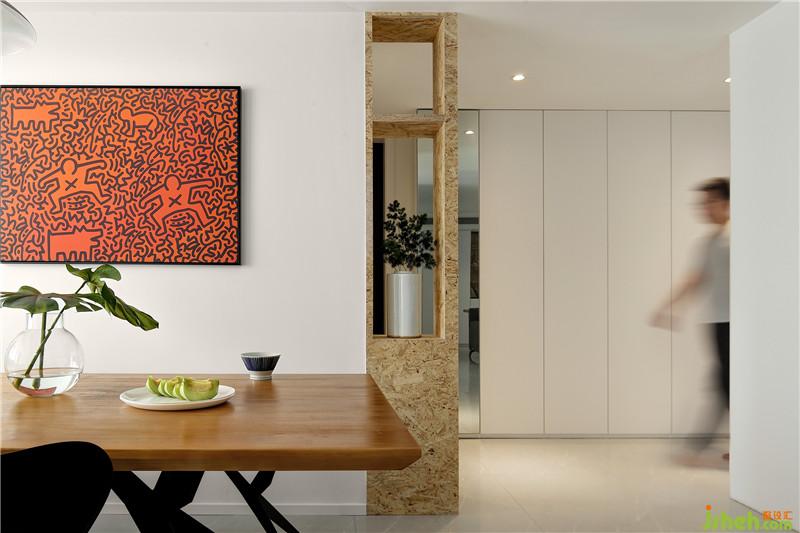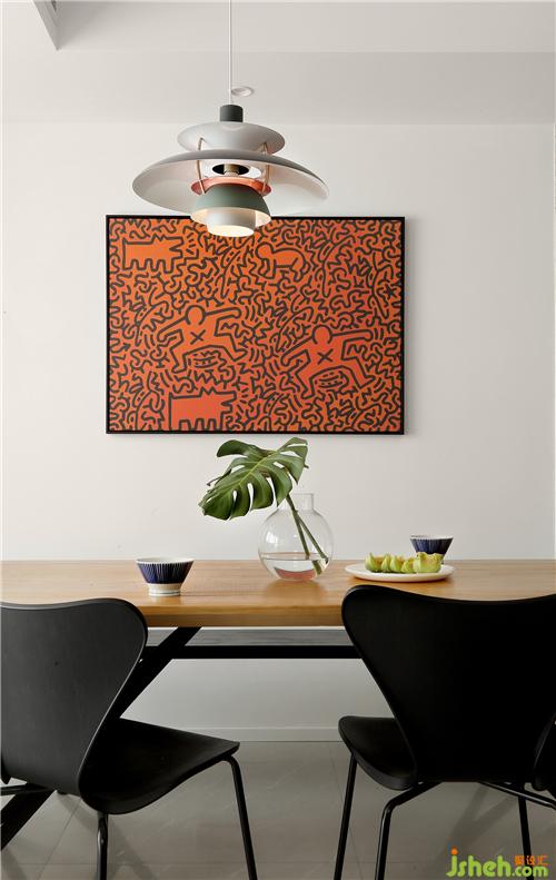 ▲基礎大面積留白加原木色,墻面一副橘紅的凱斯. 哈林的涂鴉畫,明亮溫暖?!熬褪俏覀兿胍臉幼影 保?
