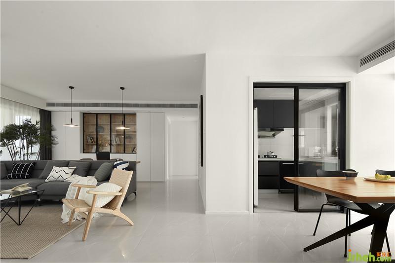 ▲本案全屋地暖,地面全部采用煙灰色柔光磚,導熱性能更好。色調也能很好的襯托整體而不爭色。
