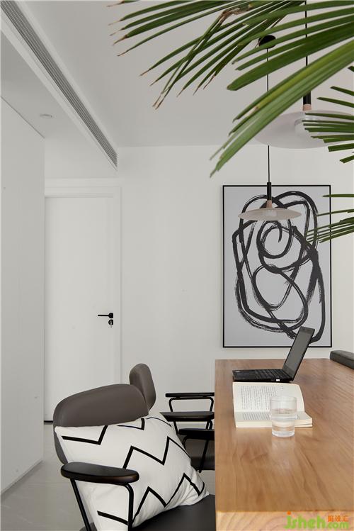 ▲從客廳看餐廳,由于地面地暖抬高,所以設(shè)計(jì)師在吊頂方案的設(shè)計(jì)上就盡可能的保持經(jīng)常活動(dòng)的空間的高度來(lái)保證舒適度。