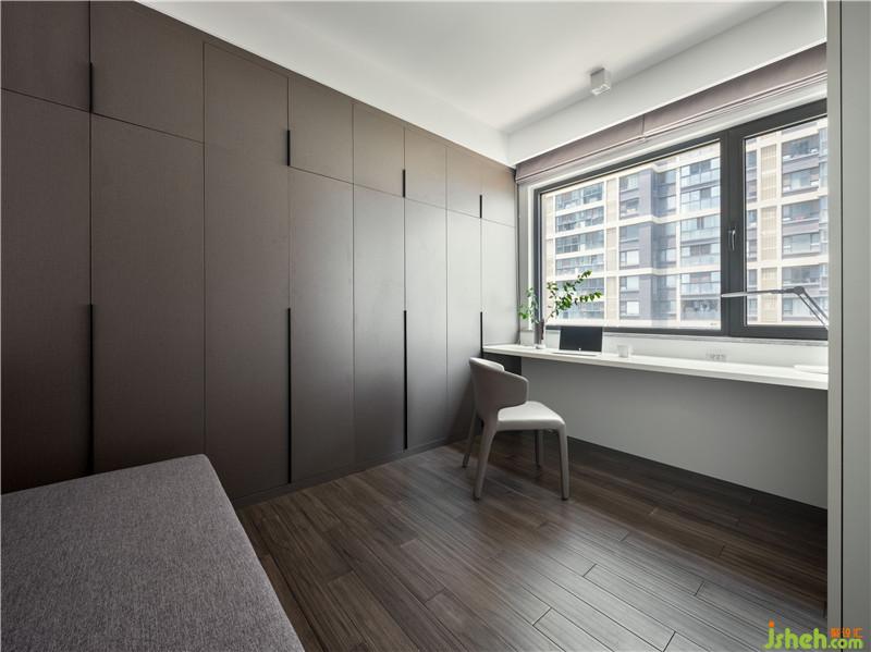 ▲書房是儲物,客房,工作學習功能三合一,南京裝修設計超大工作臺可以容納兩人同時使用。