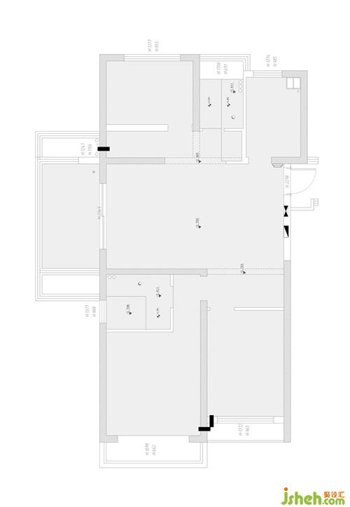 ▲原始平面圖 優(yōu)點是沒有任何浪費的空間(這點其實也是缺點,因為沒有浪費空間也表明同時沒有任何回旋余地過渡空間。),同時陽臺足夠?qū)挸?。缺點就是沒有門廳,廚房空間相對較小。