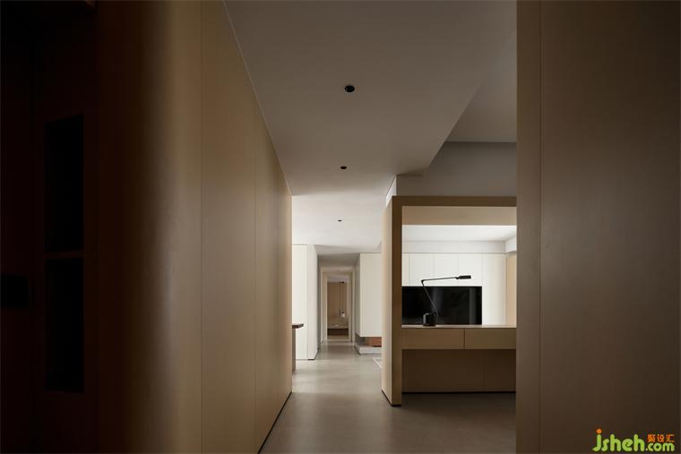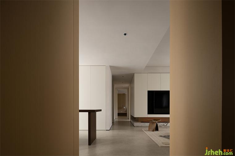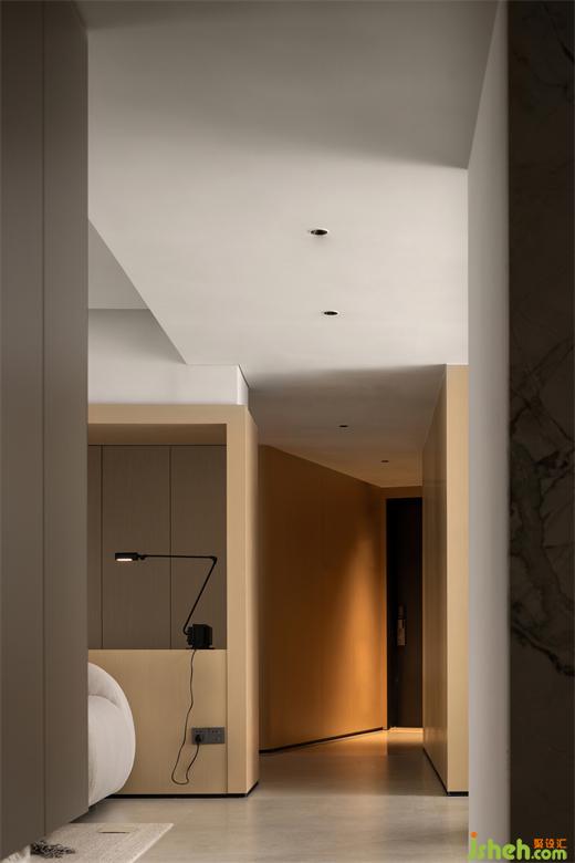 月有陰晴圓缺,水有潮起潮落,不變的是永恒的變化。以筆直過道為軸心,納入兩側的多個場景,通過色塊的深淺、光影的濃淡、陳設高低,展露層層遞進的景深美學。在主要場域之內,裝修設計盡興記錄朝夕相處的歡樂,在次要區(qū)域完成溫柔的導引。