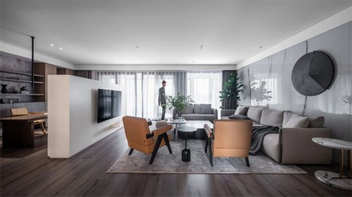 空間感與呼吸感,即是流通屬性的表現。穩(wěn)定大開間的氣勢,用黑、灰、白、木色修飾多重質感,加強人與環(huán)境親密互動的意愿。保留簡約素雅的語境,一改筆直貫通的架構,裝修設計打造轉折墻壁的新視感,包裹溫馨的光,令人想要流轉其間探索新境。