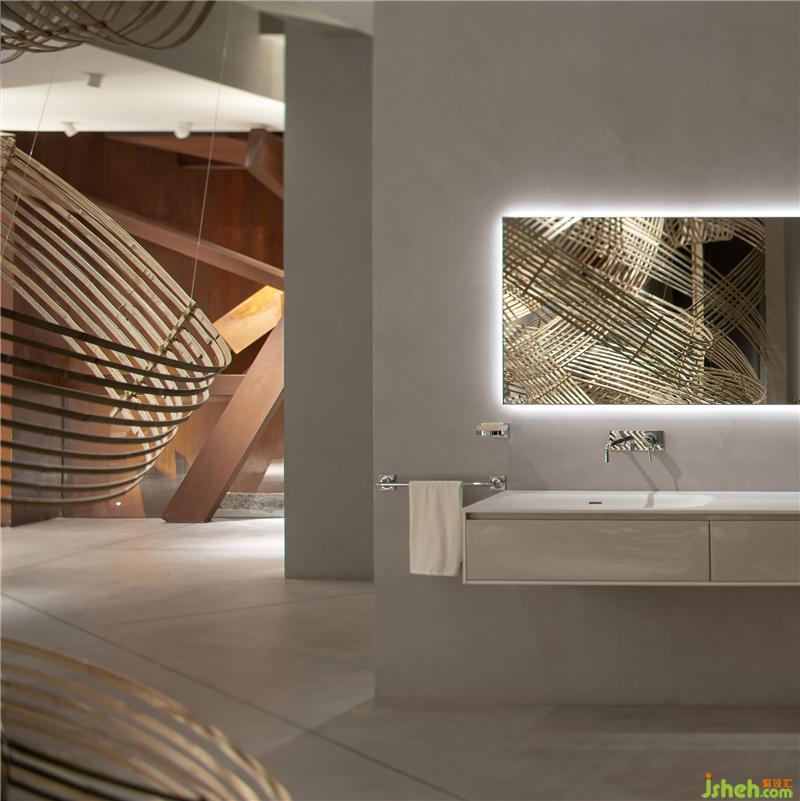空間中不同的體塊穿插在各種角度自然會(huì)形成變化多樣的立體構(gòu)成。展廳設(shè)計(jì)