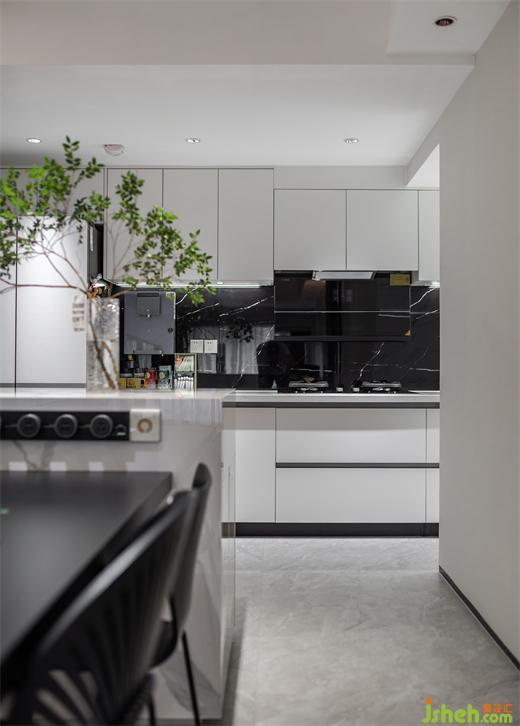 項(xiàng)目介紹 | 本案主要以黑白灰為基調(diào),白色系作為主色調(diào),黑色為點(diǎn)綴色調(diào),其中男女業(yè)主有兩個(gè)上幼兒園的小朋友,所以在色調(diào)上還會(huì)融合一些童趣的小物件,讓空間更活潑,層次感更強(qiáng)。隱形門的設(shè)計(jì)使得沙發(fā)背景更加的整體線性分明,電視背景兼?zhèn)淞艘徽诺膬?chǔ)物柜,使得空間有更好的延展性,整體性更強(qiáng)。在小空間里面針對(duì)家四口來(lái)說(shuō),在兼?zhèn)涿烙^的同時(shí)也要做到一定的儲(chǔ)物功能。裝修設(shè)計(jì)