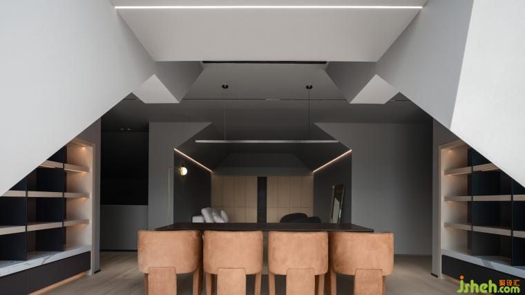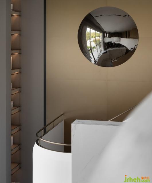 作為主要社交場(chǎng)所,會(huì)客區(qū)的設(shè)計(jì)優(yōu)雅、寧靜,同時(shí)功能齊全。開放式設(shè)計(jì)讓人與人之間的距離感消失,增進(jìn)了彼此間的親密感。高品質(zhì)的墻面飾面與藝術(shù)裝飾共同構(gòu)成了一個(gè)低調(diào)奢華且充滿藝術(shù)氣息的空間。每一個(gè)細(xì)節(jié)都經(jīng)過精心考量,空間的布局讓人感受到一種流動(dòng)的美,仿佛時(shí)間在這里變得更加緩慢,讓人陶醉于溝通交流的樂趣與美好之中。
