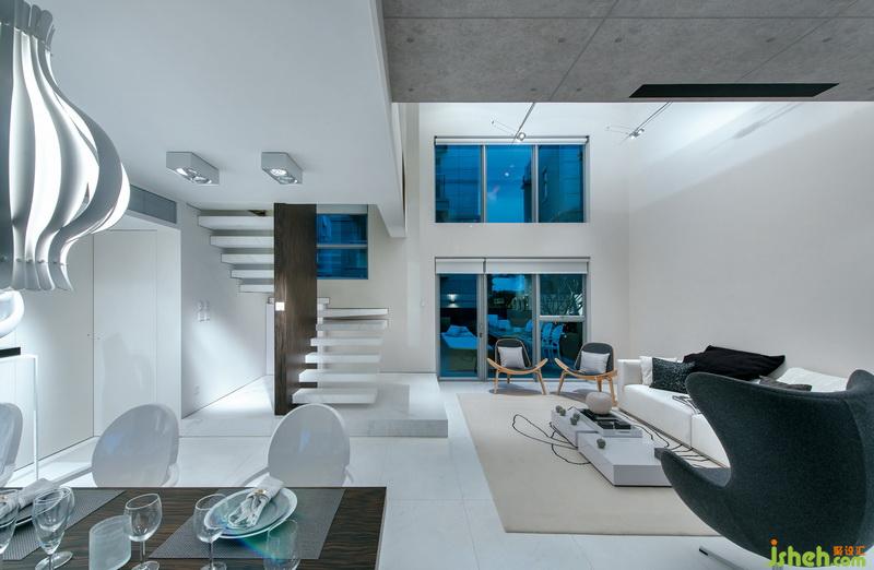 白色可麗耐臺面與潔白的大理石交相呼應,深棕木制墻壁一掃極簡空間的清冷