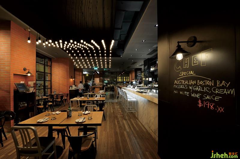 吧臺的燈光將視覺動態(tài)延伸到了卡座區(qū)域