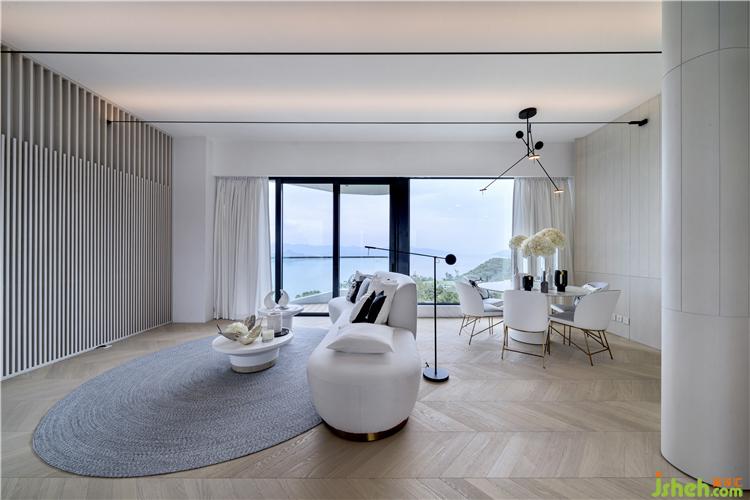 近在咫尺的海天景致,是馬鞍山峻源示范單位得天獨(dú)厚的優(yōu)勢,自然美景簇?fù)硐?,設(shè)計(jì)上毋須刻意對齊。淡素簡約,已足夠賞心悅目,室內(nèi)設(shè)計(jì)師用上自家調(diào)配的白木色,配以直線和弧線的雙線點(diǎn)綴,加上花卉作主題,呈現(xiàn)出自然富品味的示范作。