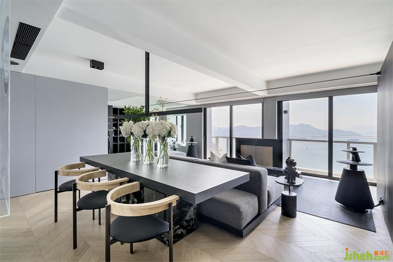 本案香港私宅設(shè)計坐落于香港海云軒,背擁綠意盎然的大欖郊野公園,臨海而建的建筑,縱享心曠神怡的海景。香港著名設(shè)計師DANNY鄭炳坤,在這里為一對年輕的業(yè)主夫婦創(chuàng)作了一間極具質(zhì)感的開放式簡約私宅。