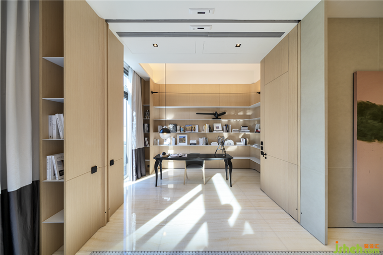 別墅裝修設(shè)計(jì)師將原本的套房改造為書房,設(shè)置電動(dòng)大趟門可滿足不同場(chǎng)景轉(zhuǎn)換??瑟?dú)處冥想或閱讀辦公,推門走出就能置身戶外呼吸新鮮空氣,閑時(shí)與家人朋友私語(yǔ)暢聊,空氣與能量似乎也自由地流轉(zhuǎn)起來(lái)。