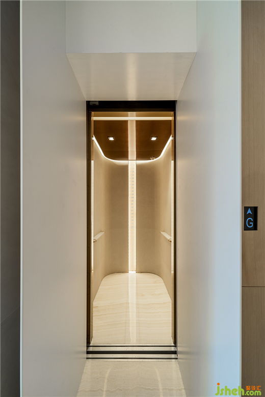 別墅裝修設(shè)計(jì)弧形半通透玻璃吊屏風(fēng)巧妙設(shè)置于入口走廊,呼應(yīng)著空間局部的弧形線條,靈巧無(wú)聲的光線穿透屏風(fēng)形成游移。線形裝飾燈貫穿于每個(gè)空間,既有功能性亦加強(qiáng)空間的線條美與韻律感。