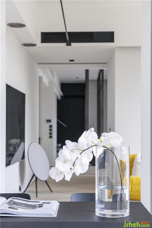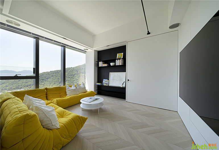 從公共區(qū)域通往兩端的私人休憩區(qū)域,情景轉(zhuǎn)換的節(jié)奏和秩序悄然發(fā)生變化。臥室前的小型私人空間,可開可合,適合一人獨(dú)自安靜閱讀或觀賞喜愛的電影,沉浸于自我向內(nèi)探求的私享時(shí)光。