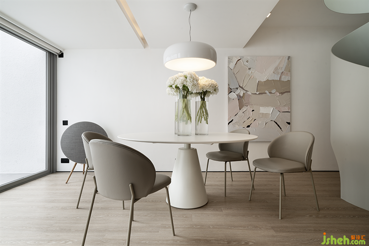 淡雅明亮色調(diào)的餐廳區(qū)域充盈著人間煙火氣,圓的溫潤柔軟和白的純潔治愈,營造出靜謐溫馨的氣息,拉近了心與心的距離,于美味佳肴中盡享歡聚之樂。