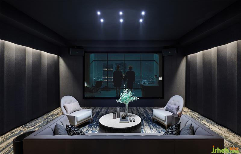 負一層的影音室營構了一個家人互動的休閑場景,智能化影音設備在有限的空間里提供了無盡的想象,通過豐富多彩的感官體驗令情緒得到放松。