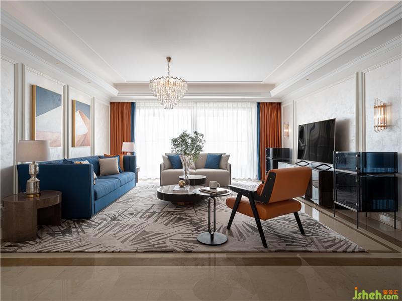 原戶型中一成不變的泛黃陳舊感,由爽凈簡(jiǎn)約的白色所替代。在輕盈的底色上,軟飾加載典雅藍(lán)和暖意橙,營(yíng)造極具視覺沖擊力的品質(zhì)感。長(zhǎng)直型空間闊然敞開,開合出高朗尊貴的廳室風(fēng)態(tài)。