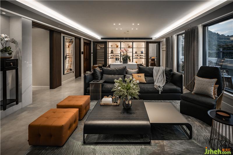 客廳與餐廳沒有任何隔墻的設(shè)計,不論是坐哪都能看到電視,去掉繁雜,保持著大空間,在軟裝色調(diào)上也保持著統(tǒng)一。