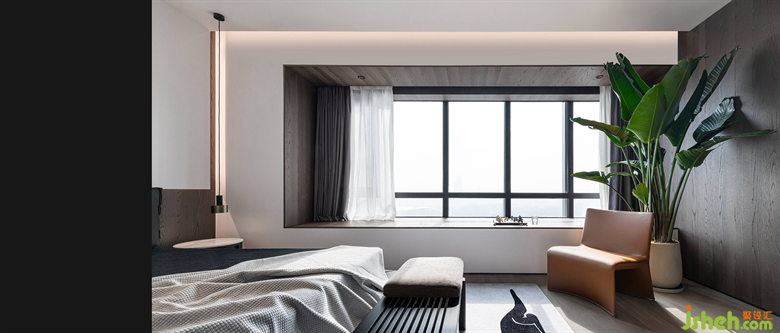 耕圖設(shè)計(jì)主臥室干凈簡(jiǎn)練的明朗線條營(yíng)造著沉著克制的空間基調(diào),搭以細(xì)膩柔和的軟裝配飾,韻與法,柔與剛,含蓄與迸溢,兼收并蓄?;貧w生活本質(zhì),靜享生活恬靜淡然之美。