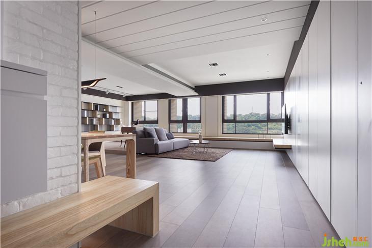 我們在客廳設(shè)計了一整條的窗邊臥榻,串聯(lián)了書房與客廳的機能,也能延伸視覺。