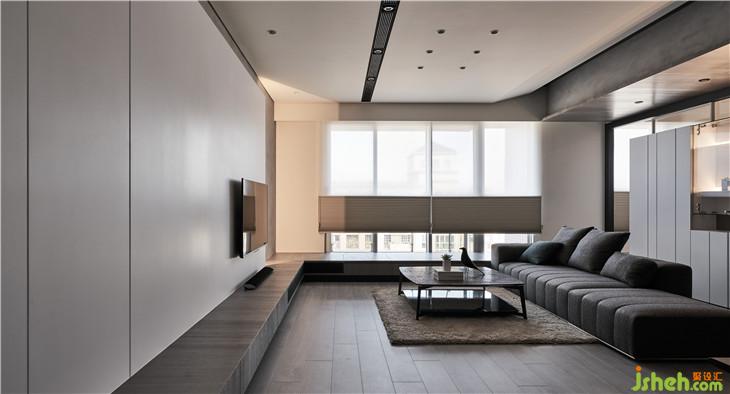 整面干凈的電視墻面,電視柜延伸到臥榻形成一個(gè)視覺(jué)延續(xù)性。