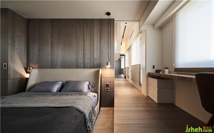 從客廳延伸到主臥的臥榻轉(zhuǎn)變成主臥化妝桌空間。