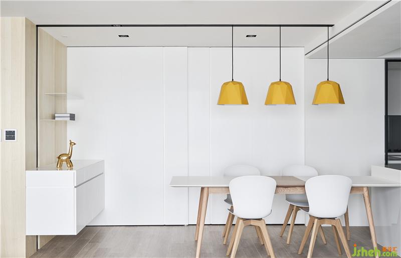 屋主是一位律師,平時(shí)工作壓力很大,所以我們決定讓整個(gè)空間都是以白色系為主,色彩心理學(xué)上,白色象征純潔、干凈、信任,很符合屋主工作的專業(yè)形象,而為了避免太大面積的白色會(huì)讓人有開放的疏離感,所以適時(shí)地穿插木頭及局部灰、黑色點(diǎn)綴,平衡視覺感受。室內(nèi)設(shè)計(jì)師
