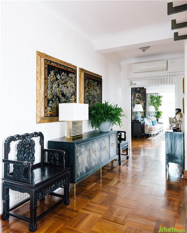 客廳走道:Baker玄關柜、清末古董酸枝對椅