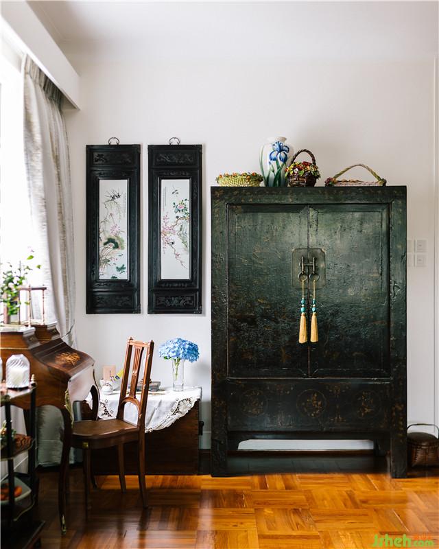 淡淡的米白色方格搭配白色邊框的幾何形圖案墻紙,Norhor經(jīng)典美式鄉(xiāng)村風(fēng)格的古銅色邊柜上搭配兩個調(diào)皮個性的Fendi和Chanel限量版公仔玩偶,是時代審美演變下的新式體驗,悄悄形成了一道獨特的空間場景,使原本素凈的老宅充滿趣味性,生活美不該是沉悶而充滿統(tǒng)一感,而是在文化氣息的氛圍下的內(nèi)斂與時代同步的時尚。