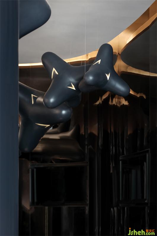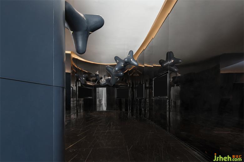 空間洋溢著浪漫唯美的氣息,變幻之中,時間、空間的感知力變弱,進入了一個忘我的時空。充滿未來科技感的材質,與色彩自成的體塊,共同構建了空間的獨特記憶,既迷幻又有務實的將產品進行暗線的展示,這一型格另類且不過度夸張,給了空間表達最大的自由度。